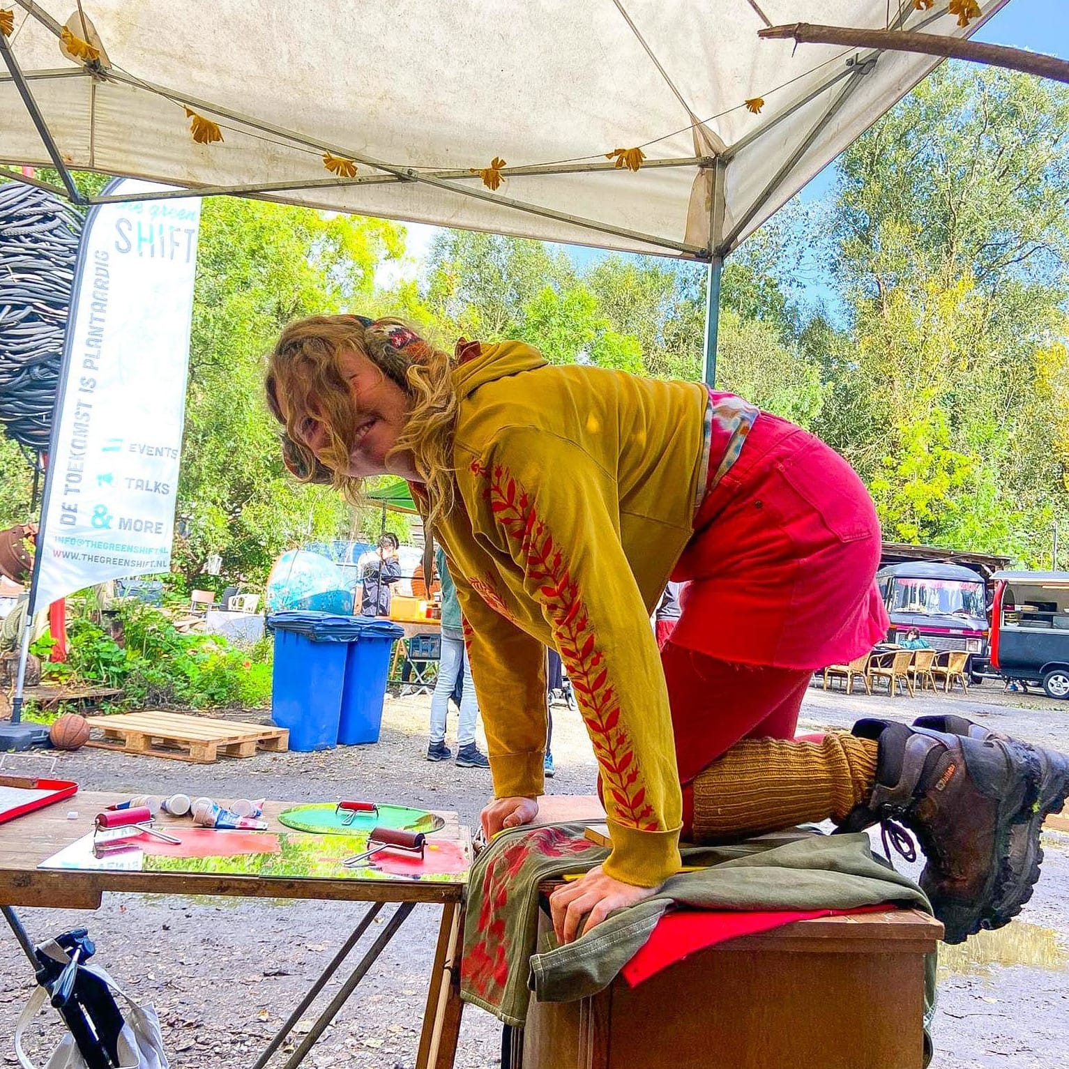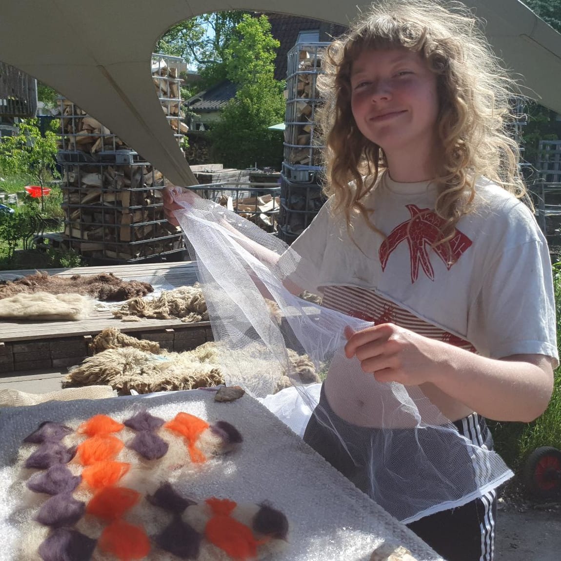 Hoi! Ik ben Marieke. Ik ben altijd bezig, met van alles: ik heb de kunstacademie gedaan, als nomade geleefd, en in Groningen beland. Op maandag is er een breiclub bij mij thuis want ik ben altijd aan het breien en als ik niet brei dan vilt of spin ik van Nederlandse wol. Ik maak tatoeages, soms verkoop ik zelfgemaakte kleding van tweedehands materialen. Ik woon in een zelfgebouwde woonwagen en heb stroom van zonnepanelen. In mijn woongroep zijn we samen bezig met recyclen en ik ben helemaal fan van evenementen op donatie... Ik probeer de wereld kleurrijker en laagdrempeliger te maken voor iedereen.